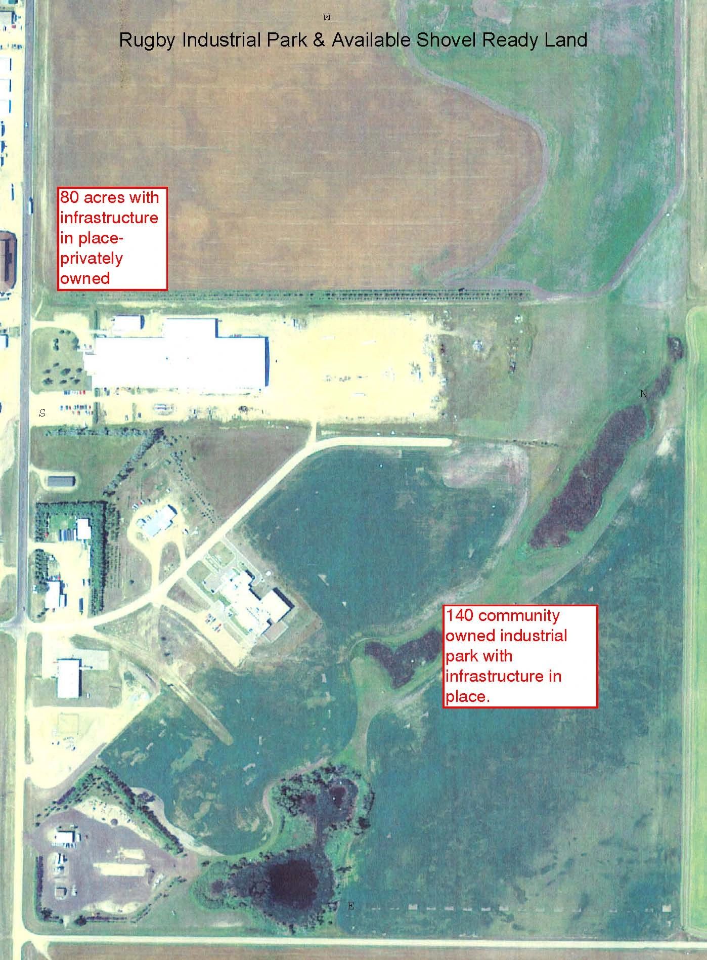 Rugby's Industrial Development Property is located at the northeast edge of the City, has 40 salable acres available for development. The development currently includes Rugby Manufacturing, Rugby Veterinary Services, The Heart of America Correctional & Treatment Center, and other businesses.